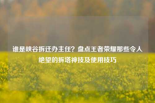 本文深入探讨了《王者荣耀》中被称为“峡谷拆迁办主任”的推塔能手,文章详细盘点了拥有独特拆塔神技的英雄,分析了他们令人绝望的推塔能力,文中还介绍了这些拆塔技能的具体使用技巧,帮助玩家掌握快速拆塔的战术,从而通过兵线运营在游戏中轻松取得胜利。